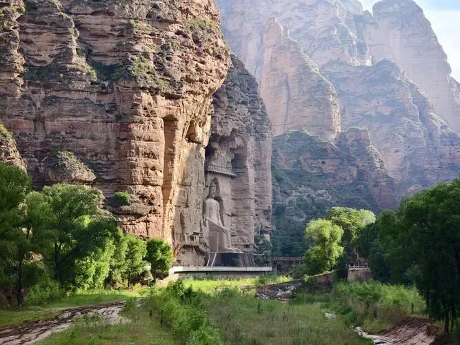 炳灵寺石窟,位于甘肃省临夏回族自治州永靖县积石山的大寺沟西侧崖壁上,为世界文化遗产,属敦煌研究院管理。